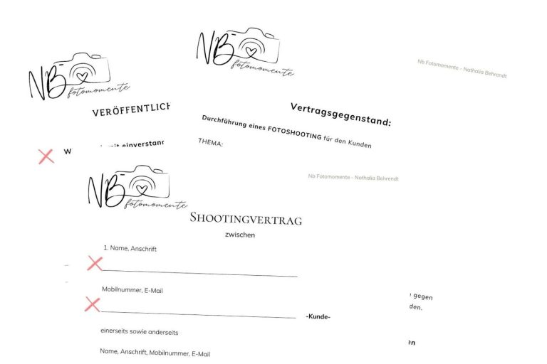 Nach der mündlichen Vereinbarung schicke ich dir vor jedem Shooting einen Vertrag zu. Darin enthalten sind die vereinbarten Eckdaten, damit wir beide auch eine gegenseitige Absicherung haben.